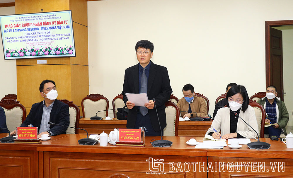 三星电机公司总经理金相南先生对本省领导人、各有关单位部门的积极帮助并为该公司快速解决各行政手续表示感谢。该公司会努力展开项目、吸引更多的辅助投资项目来太原省。金相南先生肯定太原省的成功也是三星的成功。