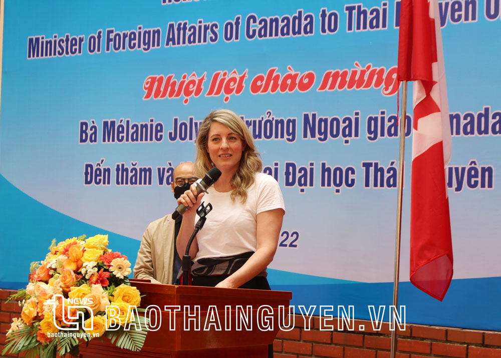 加拿大外交部部长梅兰妮乔莉女士对太原大学的这次访问表示高兴, 同时肯定加拿大的对外政策和优先就是支持女权主义,女性。加拿大一直希望能为越南的妇女和女孩建设、帮助及创造一个安全的环境。加拿大相信,能建成一个安全、平等的环境是迈向和平、盛旺的正确道路。新冠病毒大大的影响到人民的生活和生计, 特别是残疾人, 他们遇到了很多困难如:失去收入、失去工作机会……通过互助基金的项目将帮助妇女有更多的经营的知识和技能, 能带来收入及帮助家庭。