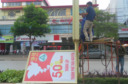 Nhằm tăng cường công tác tuyên truyền trong dịp kỷ niệm 50 năm Ngày thành lập và đón nhận Huân chương Độc lập hạng Nhất, T.P Thái Nguyên đang triển khai lắp dựng mới và thay nội dung trên 300 pa nô tại các trục đường lớn và trước trụ sở một số cơ quan.