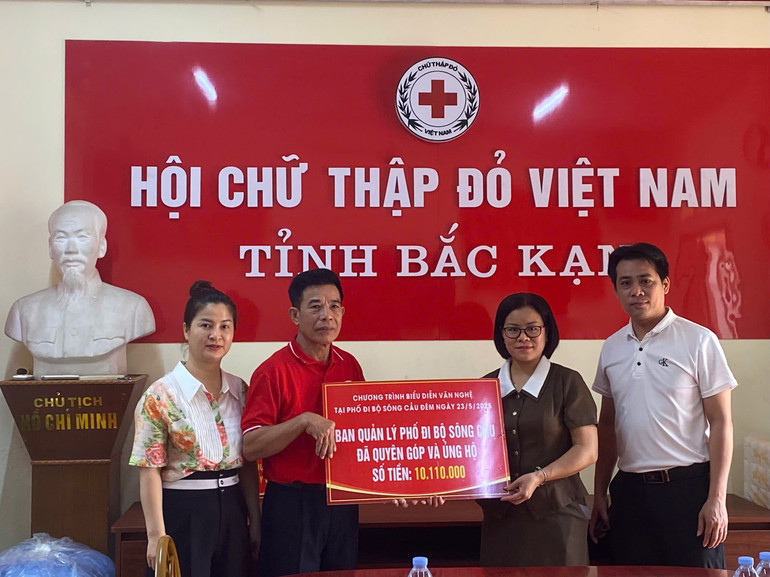 Ban Quản lý Phố đi bộ Sông Cầu trao hơn 10 triệu đồng của tập thể, cá nhân quyên góp ủng hộ trong chương trình văn nghệ tổ chức tại Phố đi bộ Sông Cầu tối 23/5 vừa qua.