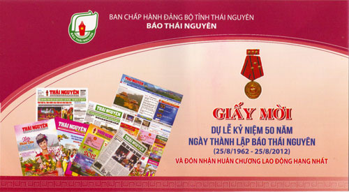 Nhân Kỷ niệm 50 năm Ngày thành lập (25/8/1962 - 25/8/2012), Báo Thái Nguyên sẽ tổ chức trọng thể Lễ Kỷ niệm và đón nhận Huân chương Lao động hạng Nhất.