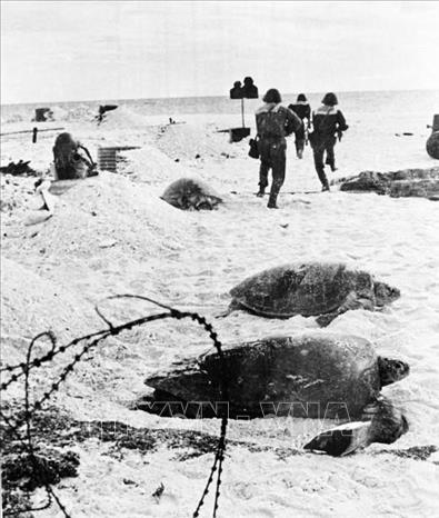 | Lực lượng Đặc công hải quân Đoàn 126 tấn công giải phóng đảo Sơn Ca, quần đảo Trường Sa, ngày 25/4/1975. Ảnh: Lê Nhật/TTXVN phát |
