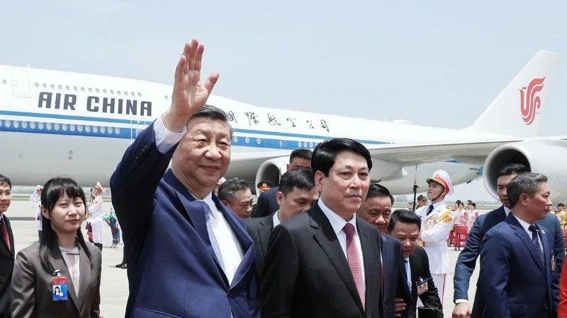 Tổng Bí thư, Chủ tịch nước Trung Quốc Tập Cận Bình bày tỏ vui mừng thăm lại Việt Nam - đất nước "đồng chí anh em", chỉ sau hơn một năm và đúng vào dịp Việt Nam long trọng kỷ niệm 95 năm Ngày thành lập Đảng Cộng sản Việt Nam, 80 năm Ngày thành lập nước và 50 năm Ngày Giải phóng miền nam, thống nhất đất nước; cho biết, việc chọn Việt Nam làm điểm đến đầu tiên trong chuyến công du nước ngoài đầu tiên của năm nay đã thể hiện đầy đủ sự coi trọng rất cao của Đảng, Nhà nước Trung Quốc đối với quan hệ Trung-Việt và tình cảm sâu đậm giữa hai nước; khẳng định qua chuyến thăm, sẵn sàng cùng Tổng Bí thư Tô Lâm và các đồng chí Lãnh đạo chủ chốt Việt Nam đi sâu trao đổi về các phương hướng, biện pháp nhằm củng cố truyền thống hữu nghị, xác định tầm nhìn cho việc xây dựng Cộng đồng chia sẻ tương lai Trung Quốc-Việt Nam có ý nghĩa chiến lược theo định hướng "6 hơn", cùng vững bước tiến xa, đóng góp cho cộng đồng nhân loại.