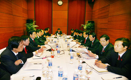 Tại Đại hội này, Đảng ta đã xác định có ba đột phá từ nay đến năm 2020, trong đó có công tác cán bộ. Tôi cho đó là chiến lược hoàn toàn đúng đắn để xây dựng được lực lượng cán bộ có chất lượng trong giai đoạn 2011-2020. Để thực hiện tốt nhiệm vụ này, tôi đề nghị từ địa phương đến Trung ương phải làm sao có biện pháp giải quyết tốt nguồn nhân lực có chất lượng cao, đặc biệt là đối với cán bộ lãnh đạo, quản lý. Tôi đề cập đến 2 nội dung: Thứ nhất, công tác đánh giá cán bộ là rất quan trọng, vì thế từ địa phương đến Trung ương phải thay đổi phương pháp đánh giá cán bộ. Thứ hai là công tác quy hoạch, luân chuyển cán bộ. Bên cạnh việc các địa phương phải làm tốt công tác này thì Trung ương cũng cần có cơ chế để địa phương triển khai. Thực tế hiện nay, Trung ương chỉ cho mỗi địa phương có 1/3 số đơn vị hành chính được bổ sung phó chủ tịch UBND, nên sau đại hội Đảng thì cán bộ để luân chuyển từ tỉnh xuống huyện rất khó, vì địa phương có đủ rồi. Còn đối với địa phương cũng phải tính toán xem luân chuyển như thế nào cho phù hợp và phát huy được năng lực cán bộ…