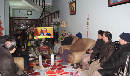 Mặc dù 8h Đại hội mới chính thức khai mạc, nhưng 7h30’ các bác trong Câu lạc bộ Hưu trí Thái Nguyên đã có mặt tại nhà bác Nguyễn Văn Lạc, Chủ nhiệm Câu lạc bộ ở phường Hoàng Văn Thụ (T.P Thái Nguyên) để cùng nhau theo dõi diễn biến của Đại hội. Mặc dù thời tiết buổi sáng rất lạnh, các bác phần lớn tuổi đã ngoài 70, song nhiệt huyết của những đảng viên trong các bác như được hâm nóng lên bởi không khí của Đại hội. Vừa theo dõi Tổng Bí thư Nông Đức Mạnh đọc Báo cáo Chính trị của Ban Chấp hành TW khoá X về các văn kiện đại hội XI của Đảng trên truyền hình, bác Nguyễn Văn Lạc, Chủ nhiệm Câu lạc bộ tâm sự với chúng tôi: Những ngày qua, tất cả các thành viên trong Câu lạc bộ Hưu trí Thái Nguyên đều dõi theo công tác chuẩn bị tổ chức Đại hội. Trước đó, mỗi một thành viên trong Câu lạc bộ đều đóng góp ý kiến vào Dự thảo văn kiện Đại hội. Chúng tôi rất vui mừng vì đánh giá trong dự thảo văn kiện rất sát với tình hình thực tế, đã rút ra bài học kinh nghiệm trong quá trình lãnh đạo đất nước, đồng thời cũng thẳng thắn nhìn nhận, chỉ ra những hạn chế, thiếu xót trong quá trình lãnh đạo, chỉ đạo. Tôi tin tưởng tuyệt đối vào Đại hội lần này sẽ xây dựng được những hướng đi mạnh mẽ, xây dựng đất nước ta giàu mạnh hơn. Phiên khai mạc Đại hội hôm nay được tổ chức rất hoành tráng. Tôi rất cảm động khi thấy ngoài những đại biểu được bầu dự Đại hội còn có sự hiện diện của các lão thành cách mạng, Mẹ Việt Nam Anh hùng, các đồng chí nguyên là lãnh đạo Đảng, Nhà nước… điều đó thể hiện tình cảm có trước có sau của Đảng ta.