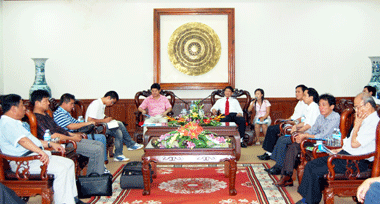 Sáng 19-9, tại Văn phòng UBND tỉnh, đồng chí Phạm Xuân Đương, Phó Bí thư Tỉnh uỷ, Chủ tịch UBND tỉnh và lãnh đạo Sở Công thương, Sở Kế hoạch - Đầu tư, Sở Tài nguyên - Môi trường đã tiếp và làm việc với 20 doanh nghiệp của tỉnh Quảng Tây (Trung Quốc) chuyên sản xuất, kinh doanh trong các lĩnh vực luyện kim, may mặc, điện tử, du lịch..