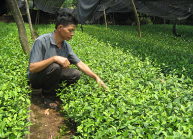Riêng vụ thu năm nay, gia đình ông cung cấp trên 40 vạn hom chè giống (trong ảnh). Nhờ có thu nhập từ ươm chè giống, kinh tế gia đình ông dần ổn định và thoát nghèo. Từ năm 2006 đến nay, gia đình ông được công nhận là hộ làm kinh tế giỏi của phường.