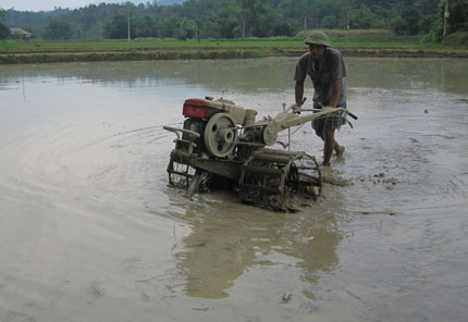 Về Vũ Chấn vào đúng vụ cấy lúa mùa, chúng tôi được chứng kiến không khí lao động hăng say và khẩn trương của bà con nông dân nơi đây. Trên đồng ruộng, tiếng máy cày, máy cắt cỏ bờ nổ rền vang. Mới hơn 9 giờ sáng, anh Lê Văn Dần, xóm Na Rang (Vũ Chấn) đã cày, bừa xong đám ruộng hơn 3 sào của gia đình để chiều cấy. Vừa tháo bừa, bánh lồng để đánh máy về nhà, anh Dần vừa phấn khởi nói: Nhờ có máy cày, việc làm đất cấy của người dân chúng tôi đã trở nên thuận lợi, rút ngắn được gấp đôi thời gian. Trước kia, khi cày bằng trâu, tôi phải mất 3 buổi sáng mới cày, bừa xong đám ruộng này. Giờ cày bằng máy thì chỉ cần gần một buổi là xong.