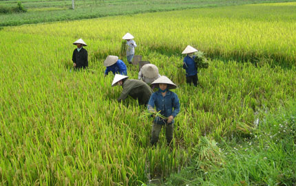 Tại xã An Khánh, mặc dù mới vào đầu vụ thu hoạch nhưng không khí mùa vụ đã rộn ràng. Gia đình anh Nguyễn Mạnh Hiếu, xóm Bãi Chè đang thu hoạch nốt diện tích lúa mùa của gia đình. Vụ mùa năm nay, gia đình anh trồng 7 sào lúa Khang dân. Nhờ áp dụng khoa học kỹ thuật đồng bộ vào đồng ruộng nên vụ mùa năm nay, toàn bộ diện tích lúa mùa của gia đình anh cho năng suất đạt 2,2 tạ/sào, trong khi năng suất lúa Khang dân của xã trung bình đạt 2 tạ/sào. Theo dự đoán của gia đình anh vụ này thu về gần 1 tấn thóc nhưng đến thời điểm thu hoạch những ruộng lúa cuối cùng, gia đình anh đã thu hơn 1,5 tấn thóc. Anh Hiếu cho biết: “Năm nay cấy lúa thuận nước, lúa lên nhanh, đỡ vất vả, nhưng thời điểm lúa đứng cái làm đòng và trỗ bông bị sâu cuốn lá cũng lo nhưng được cán bộ khuyến nông chỉ cho mua thuốc đặc trị nên vẫn bội thu tôi mừng lắm”.