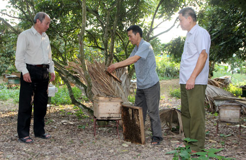 Rời cơ sở sản xuất Huyên Nhiên, chúng tôi đến thăm mô hình trang trại trồng cây ăn quả, nuôi ong lấy mật của gia đình cựu chiến binh Lê Văn Đôn, xóm làng Phan, xã Linh Sơn. Năm 1979, ông Lê Văn Đôn, khi đó 19 tuổi, xung phong lên đường nhập ngũ và được biên chế vào Sư đoàn 317, Quân chủng Phòng không Không quân. Năm 1984, ông được xuất ngũ, trở về địa phương công tác tại Xí nghiệp gỗ Tháng Tám (Đồng Hỷ).