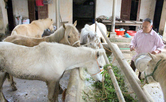 Một trong những hộ chăn nuôi điển hình là gia đình anh Dương Xuân Trường, hiện nay có trên chục con ngựa bạch. Một con ngựa bạch giống có giá từ 25 đến 30 triệu đồng, ngựa trưởng thành (thời gian nuôi tối thiểu là 3 năm) có giá từ 50 đến 70 triệu đồng/con. Ngoài việc nuôi ngựa thịt thì gia đình anh con nấu cao để có thêm thu nhập. Với việc chăn nuôi ngựa bạch, 1 năm gia đình anh có thu nhập khoảng 200 đến 250 triệu đồng/ năm.
