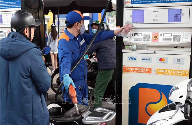 | Khách hàng mua bán xăng, dầu tại một điểm kinh doanh xăng dầu của Petrolimex trên địa bàn Hà Nội. Ảnh: Trần Việt/TTXVN |
