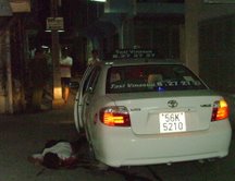 Trong lúc đuổi theo, công an phát hiện trong hẻm 114 đường Bàn Cờ có một thanh niên nằm bất động bên cạch chiếc xe taxi nói trên, người nạn nhân đẫm máu, phía trên đầu có một dao nhọn, dài khoảng 25cm còn dính máu.
