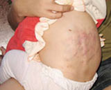 Nghi ngờ chồng mình có ‘’tình ý’’ với mẹ cháu Hoài, Mỹ đã lấy thắt lưng, dây sạc điện thoại đánh vào đầu cháu bé 9 tháng tuổi gây thương tich.