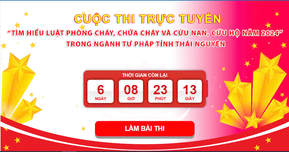 Cuộc thi được tổ chức bằng hình thức thi trắc nghiệm trực tuyến trên Cổng thông tin điện tử Phổ biến, giáo dục pháp luật tỉnh Thái Nguyên, địa chỉ https://pbgdplthainguyen.gov.vn/, Chuyên mục “Cuộc thi trực tuyến tìm hiểu Luật Phòng cháy, chữa cháy và cứu nạn, cứu hộ năm 2024” trong ngành Tư pháp tỉnh Thái Nguyên.