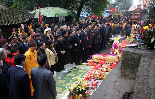 Đông đảo du khách thập phương và người dân trong huyện tổ chức các đoàn đến dâng hương, dâng lễ tại đền Đuổm.
