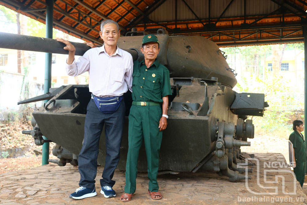 | Các cựu chiến binh bên chiếc xe tăng M31 của Mỹ đã bị quân dân Lộc Ninh bắn hạ. |