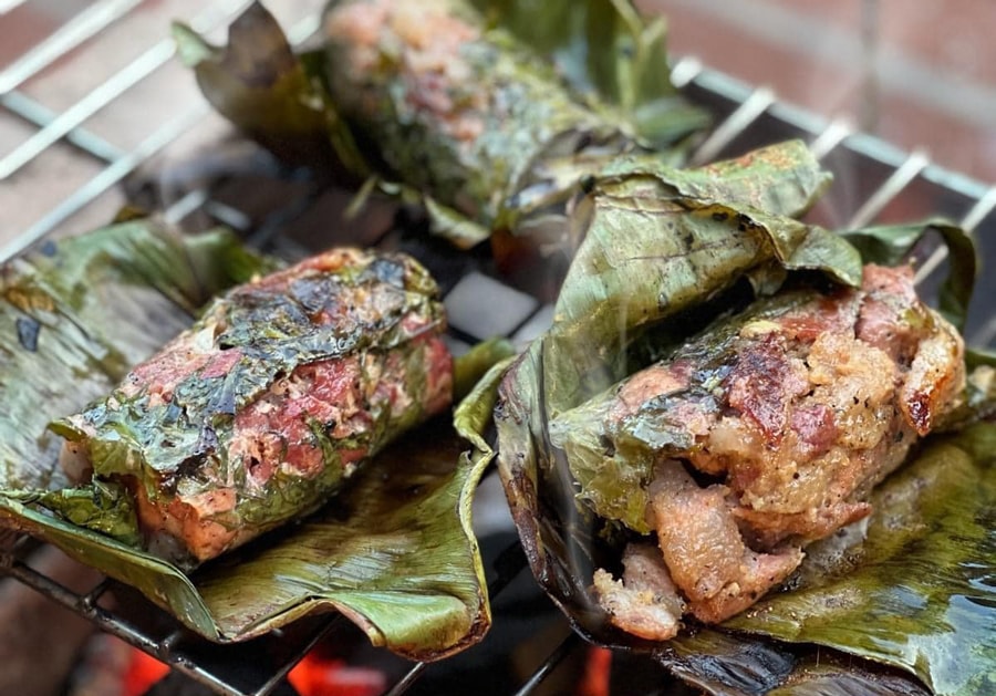 Từ phần nạc vai mềm ngọt, bì lợn và thính gạo, người dân Thọ Xuân tạo nên món nem nướng độc đáo. Nem được gói trong lá ổi, lót lá đinh lăng, bọc lá chuối bên ngoài để giữ nhiệt và lên men tự nhiên. Khi nướng, mùi thơm của thịt quyện với hương lá tạo thành hương vị hấp dẫn, làm say lòng thực khách.