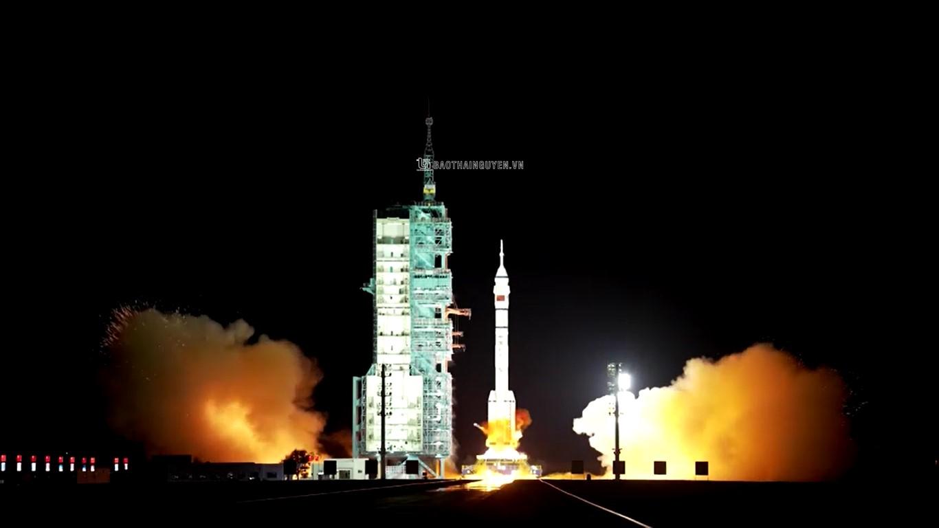 | Tên lửa Thần Châu-21 mang theo phi hành đoàn lên trạm không gian Thiên Cung. |