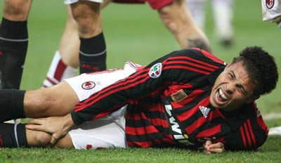 Huyền thoại bóng đá thế giới này gục ngã khi nhảy lên đón bóng từ đường chuyền của Oddo trong trận hòa 1-1 của Milan với Livorno đêm qua. Ngay lập tức, anh ngã xuống quằn quại trên sân, tiếng gào thét hòa với tiếng khóc. Các đồng đội xúm lại quanh anh với vẻ mặt kinh hãi và lập tức gọi nhân viên y tế.