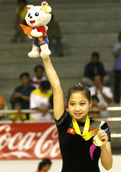 Ngân Thương đang tập luyện dưới sự hướng dẫn của chuyên gia Trung Quốc. Sắp tới, cô sẽ sang Trung Quốc tập huấn.