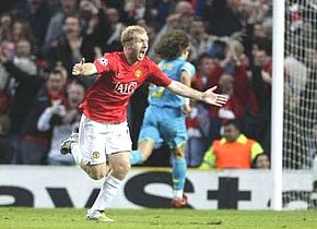 Lướt từ dưới lên, Scholes tung cú sút lai má ngoài, bóng đi lắc, ghim thẳng vào góc dán tem khung thành Barca. Thủ môn Valdes rất cố gắng nhưng không có bất kỳ cơ hội nào cho anh. Đây là bàn thắng đầu tiên của Scholes kể từ bàn thắng ghi vào lưới Portsmouth hồi tháng 8-2007.