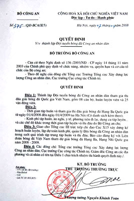 Bộ Công an vừa có quyết định thành lập đội bóng đá CAND. Nòng cốt chính của đội là ĐT CAND VN.