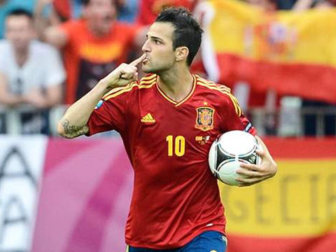 5. Cesc Fabregas sút chéo góc như kẻ chỉ ấn định chiến thắng 4-0 trong trận Tây Ban Nha - Ireland.
