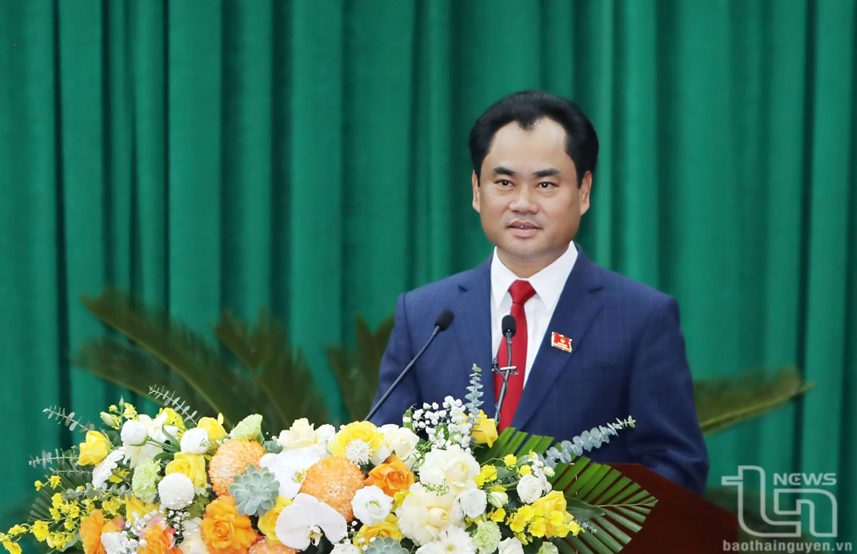 | Đồng chí Trịnh Việt Hùng, Ủy viên dự khuyết Trung ương Đảng, Bí thư Tỉnh ủy, phát biểu tại phiên khai mạc Kỳ họp thứ 23, HĐND tỉnh Thái Nguyên khóa XIV. |