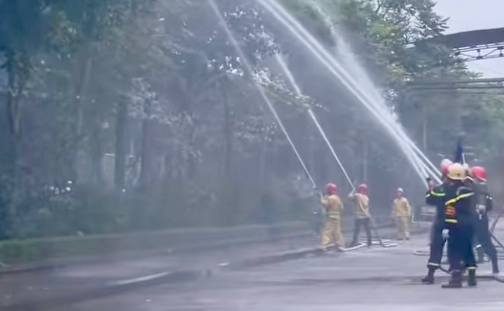 | Lực lượng Cảnh sát phòng cháy, chữa cháy và cứu nạn, cứu hộ (Công an tỉnh Thái Nguyên) diễn tập dập tắt đám cháy. |