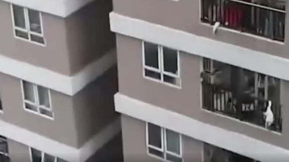 Trước đó, chiều 28-2, một bé gái 3 tuổi ở tòa nhà 60B Nguyễn Huy Tưởng (quận Thanh Xuân, Hà Nội) bất ngờ bò từ trong nhà rồi trèo ra lan can. Sau đó, bé gái bám vào lan can, treo mình lơ lửng. Một số người dân ở tòa bên cạnh phát hiện sự việc đã hô hoán người tới cứu giúp. Lúc này, một người đàn ông phía dưới trèo lên mái che của sảnh và kịp thời đỡ được cháu bé.