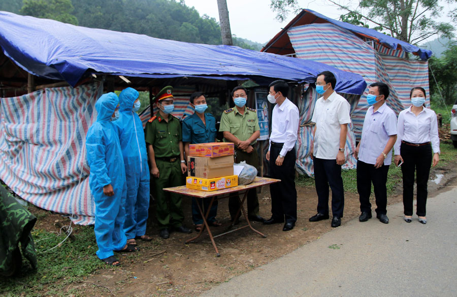 Thay mặt Đoàn, đồng chí Dương Văn Tiến đã ân cần thăm hỏi, tặng quà, động viên, khích lệ tinh thần cán bộ, chiến sĩ trực làm nhiệm vụ. Đồng thời, đề nghị các cán bộ, chiến sĩ, lực lượng chức năng trực chốt không được lơ là chủ quan, thực hiện nghiêm việc đo thân nhiệt, yêu cầu đeo khẩu trang, khai báo lịch trình di chuyển đối với người di chuyển ra vào tỉnh nhằm phát hiện và xử lý kịp thời các trường hợp nghi nhiễm COVID-19…