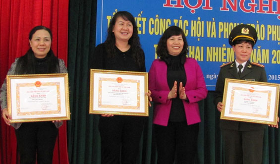 Nhân dịp này, Hội LHPN tỉnh đã tặng Kỷ niệm chương “Vì sự phát triển của Phụ nữ Việt Nam” cho 12 cá nhân, tặng Bằng khen của Trung ương Hội LHPN Việt Nam, Hội LHPN tỉnh cho các tập thể, cá nhân có thành tích xuất sắc, đóng góp vào phong trào phụ nữ trong thời gian qua (ảnh).