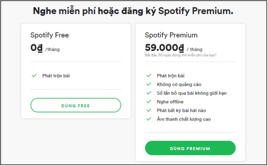 Dưới đây là bảng giá chi tiết tài khoản Spotify Premium tại Premiumvns Shop: