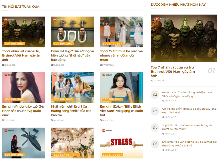 Không chỉ cập nhật nhanh các tin tức theo xu hướng Kênh 14 còn mang đến cho độc giả những nội dung tin tức cực kỳ đa dạng. Từ giải trí, đời sống, ẩm thực, thời trang cho đến học tập, phát triển bản thân. Mỗi chuyên mục đều được xây dựng với nội dung gần gũi, thực tế.