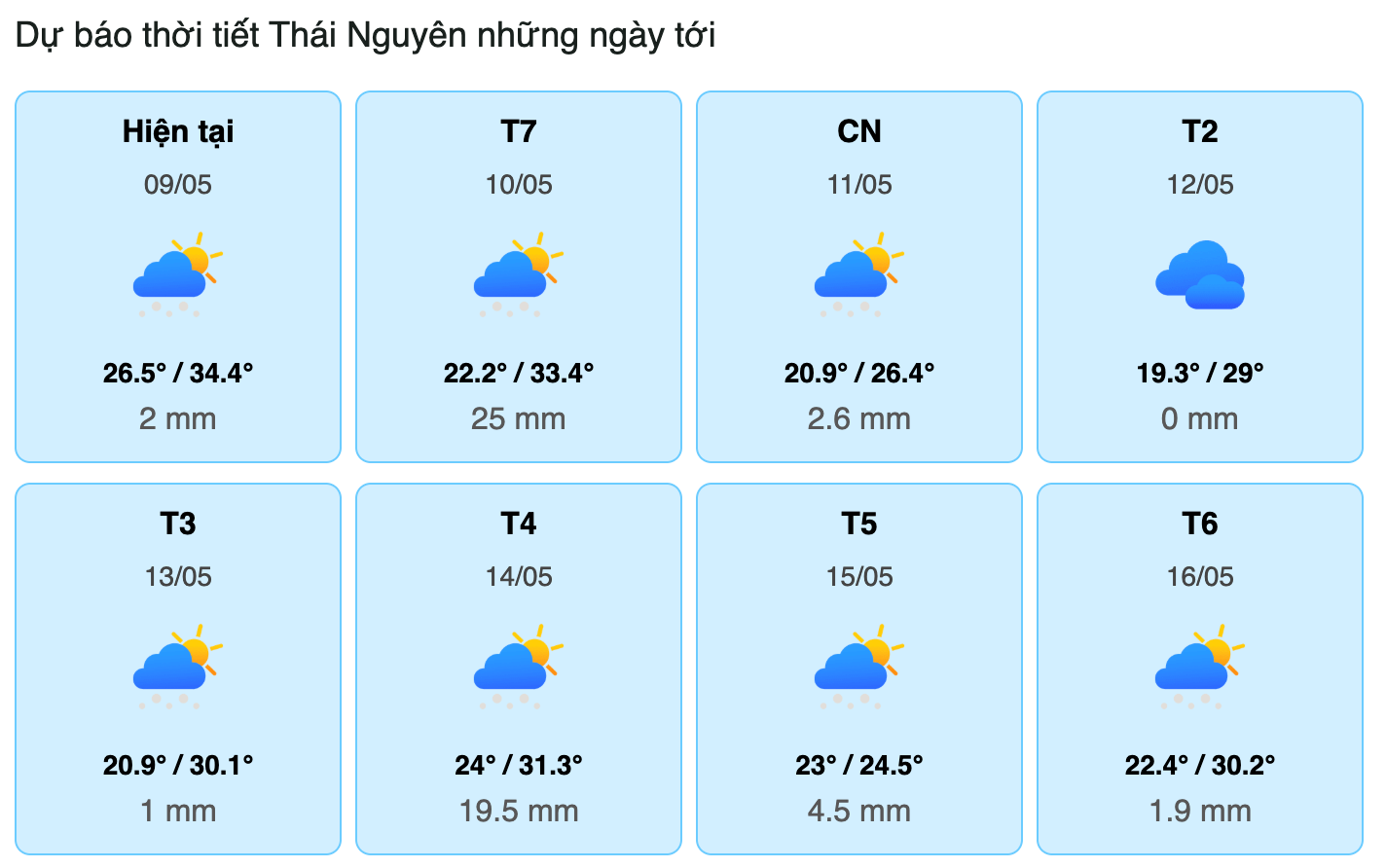 Tại chuyên mục dự báo thời tiết Thái Nguyên, người dùng có thể xem dự báo chi tiết theo giờ, theo ngày, đi kèm bản đồ radar mưa trực quan và dễ hiểu. Ngoài ra, còn có thể theo dõi tình hình thời tiết 7 ngày, thậm chí 30 ngày tới. Website rất phù hợp cho việc lên kế hoạch sản xuất, kinh doanh hoặc du lịch. Các cảnh báo về mưa lớn, sạt lở, ngập lụt cũng được cập nhật rõ ràng, giúp chủ động phòng tránh thiên tai.