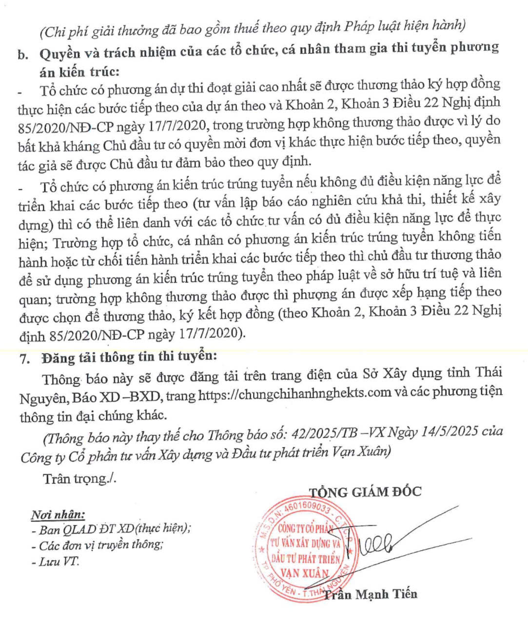 Thông báo mời tham gia thi tuyển phương án thiết kế kiến trúc Công trình Nhà hỗn hợp cao tầng, thuộc Khu đô thị Nam Thái (phần diện tích 19,45ha), TP.Phổ Yên, tỉnh Thái Nguyên: