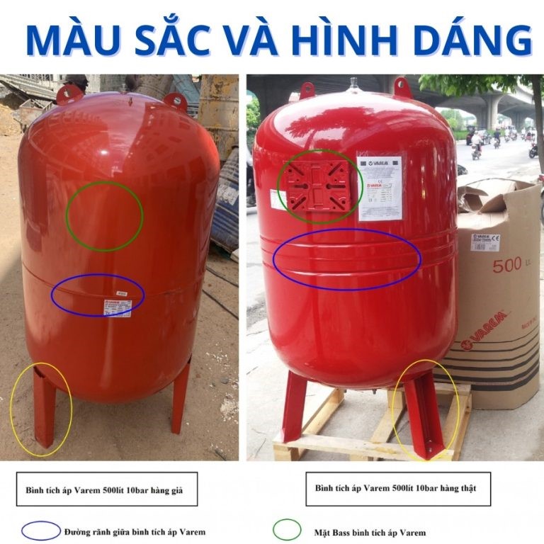 Để phân biệt cụ thể hơn chúng ta cùng so sánh cách đặc điểm sau của bình tích áp Varem thật và giả: