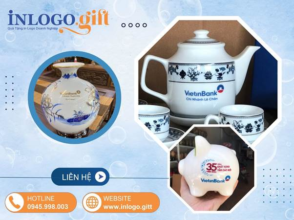 Với vị thế là một trong những ngân hàng hàng đầu Việt Nam, Vietinbank luôn đặt ra yêu cầu cao về sự chuyên nghiệp và đẳng cấp cho các sản phẩm quà tặng. INLOGO đã hân hạnh cung cấp các sản phẩm đa dạng như cốc sứ inlogo, bộ bát cơm Bát Tràng, bình hút lộc phong thủy, set khăn bông... Mỗi sản phẩm đều được gia công tỉ mỉ, đảm bảo logo và hình ảnh thương hiệu Vietinbank được thể hiện một cách trang trọng, góp phần nâng cao giá trị trong các chương trình tri ân khách hàng và đối tác.