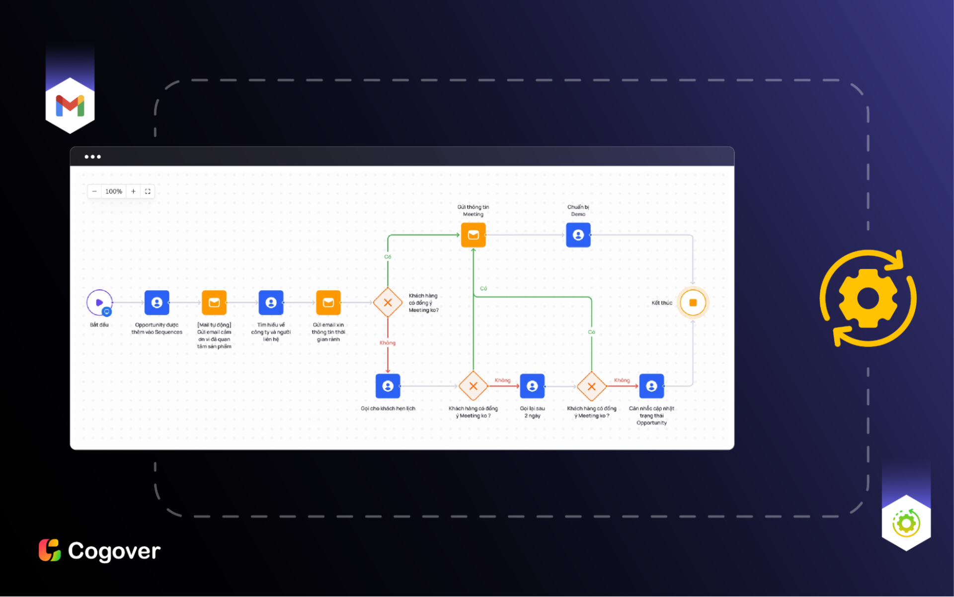 💡 Cogover CRM cho phép doanh nghiệp tự động hóa toàn bộ quy trình bán hàng và chăm sóc khách hàng, tập trung mọi dữ liệu trên một nền tảng duy nhất. Hệ thống tự động phân bổ công việc, nhắc nhở nhiệm vụ cho từng nhân viên Sales, đồng thời cung cấp báo cáo hiệu suất real-time, giúp nhà quản lý có góc nhìn toàn diện và ra quyết định kịp thời.