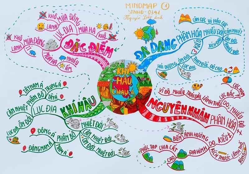 Áp dụng sơ đồ tư duy, hay còn gọi là mindmap, là một trong những phương pháp học tập phổ biến và có thể áp dụng cho tất cả các môn học. Khi sử dụng sơ đồ tư duy cho môn Địa lý, trước tiên bạn cần xác định những ý chính và nội dung cốt lõi của bài học, sau đó tiến hành vẽ sơ đồ. Bạn có thể sử dụng sơ đồ hình khối hoặc sơ đồ cây để tổ chức thông tin một cách khoa học và hợp lý. Đối với những từ khóa hoặc số liệu quan trọng, bạn có thể dùng bút màu để nhấn mạnh, hoặc gạch chân và bôi đậm các từ khóa đó.
