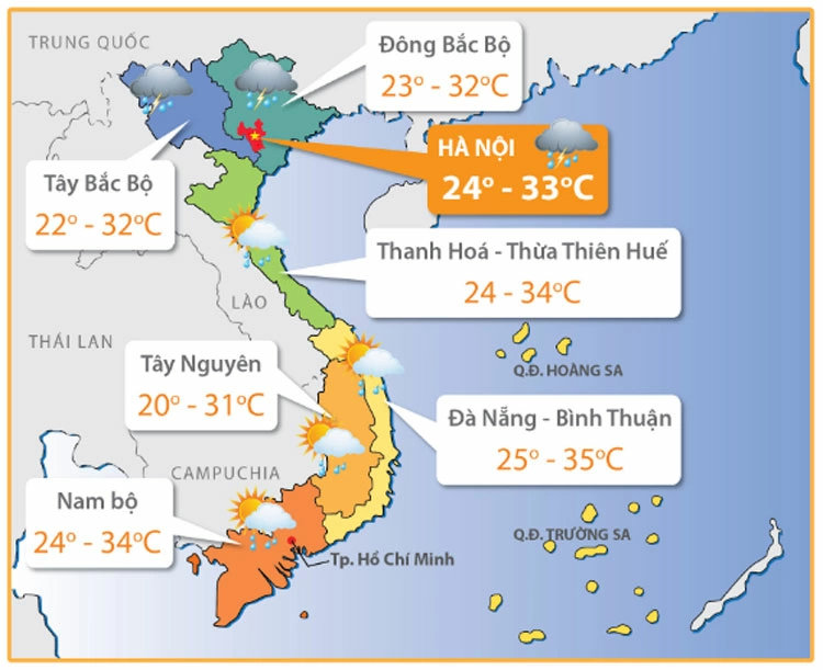 Bức tranh thời tiết từ Bắc vào Nam những ngày tới cho thấy sự phân hóa rõ rệt, nhưng điểm chung vẫn là mưa rào và độ ẩm cao.