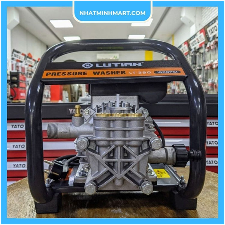 Model Lutian LT-390B có công suất 1.800W, áp lực tối đa 112 bar và lưu lượng nước 7,3 lít/phút. Máy trang bị dây cao áp lõi thép dài 8m và súng phun điều chỉnh linh hoạt, cho phép người dùng vệ sinh nhiều bề mặt. Thiết kế nhỏ gọn, chắc chắn, tiết kiệm nước và điện giúp sản phẩm được ưa chuộng trong gia đình.