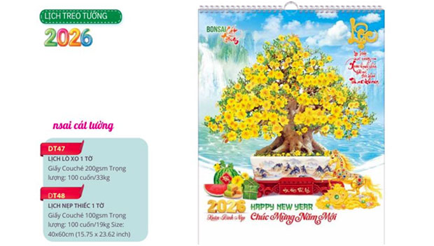 Lịch Tết Hải Đăng - Xưởng sản xuất lịch treo tường 1 tờ uy tín, đáp ứng mọi kích thước