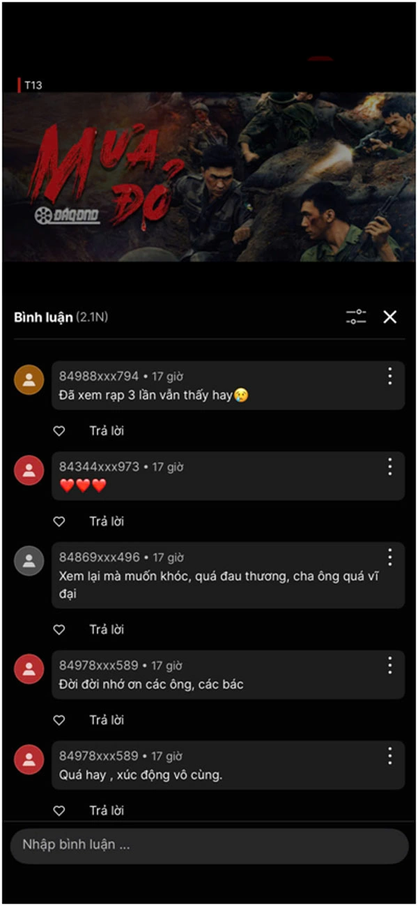 Khán giả bình luận sau khi xem phim Mưa đỏ trên TV360