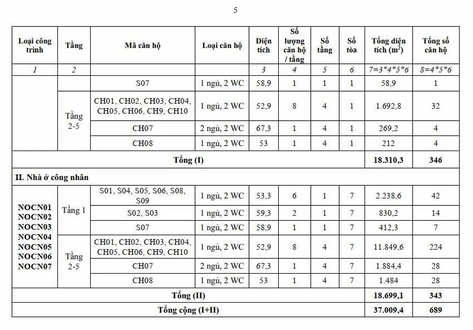 - Diện tích xây dựng Nhà ở xã hội cao tầng: 48.798,6m2