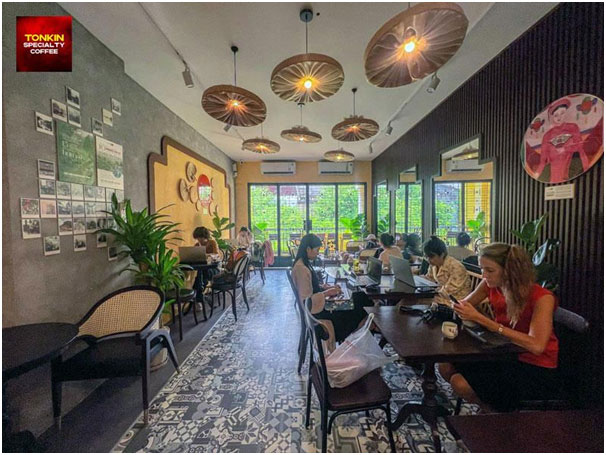 - Tonkin Garden Cafe: Một chốn ẩn mình thực sự nằm sâu trong con hẻm nhỏ yên tĩnh. Khác hẳn với sự náo nhiệt ngoài phố lớn, chi nhánh này mở ra một không gian xanh mướt đầy thư thái. Tiếng lá xào xạc hòa cùng không gian yên bình là môi trường lý tưởng để bạn làm việc, đọc sách hoặc đơn giản là chậm lại để tận hưởng sự tĩnh lặng hiếm hoi.