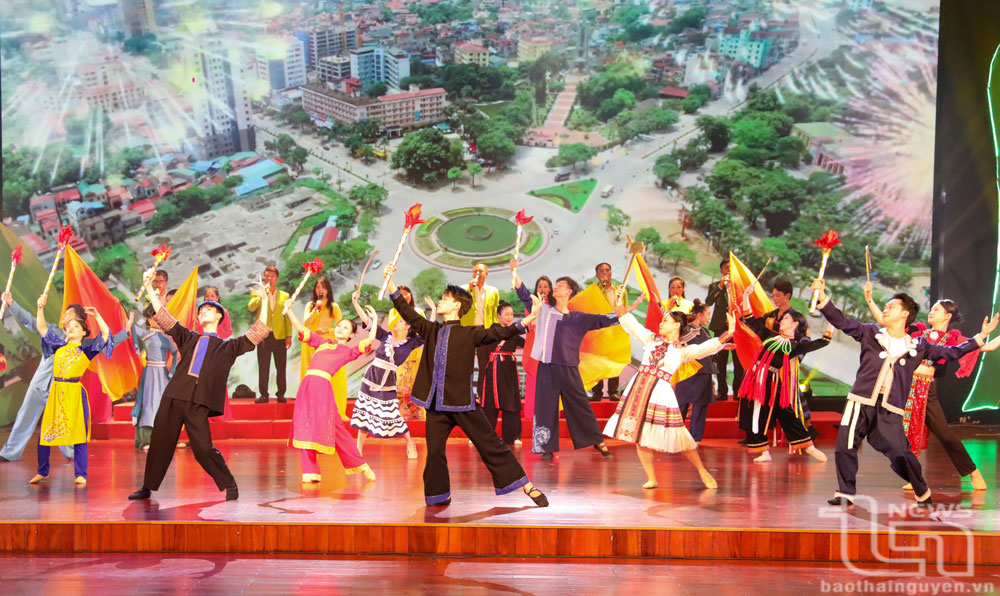 | Các tiết mục nghệ thuật được dàn dựng công phu, sâu lắng, khắc họa đậm nét hình ảnh quê hương Thái Nguyên – vùng đất giàu truyền thống cách mạng, văn hóa và tiềm năng phát triển. |