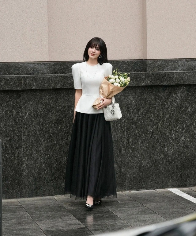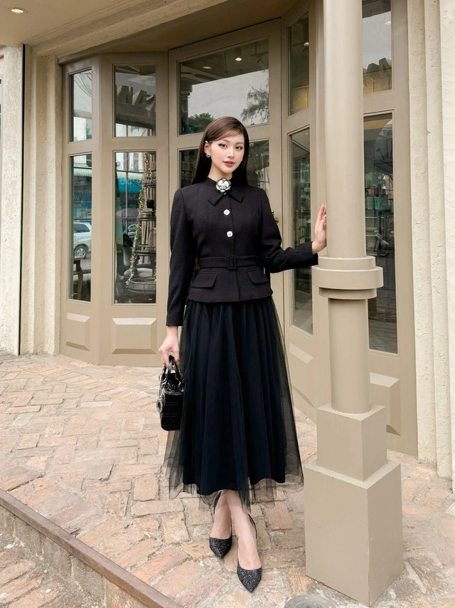 Để tăng điểm nhấn cho bộ trang phục, nàng có thể phối thêm đôi giày cao gót mũi nhọn, túi xách nhỏ có cấu trúc cứng cáp cùng chiếc lắc tay nhẹ nhàng để giữ trọn tinh thần thanh lịch cùng khí chất của nàng.
