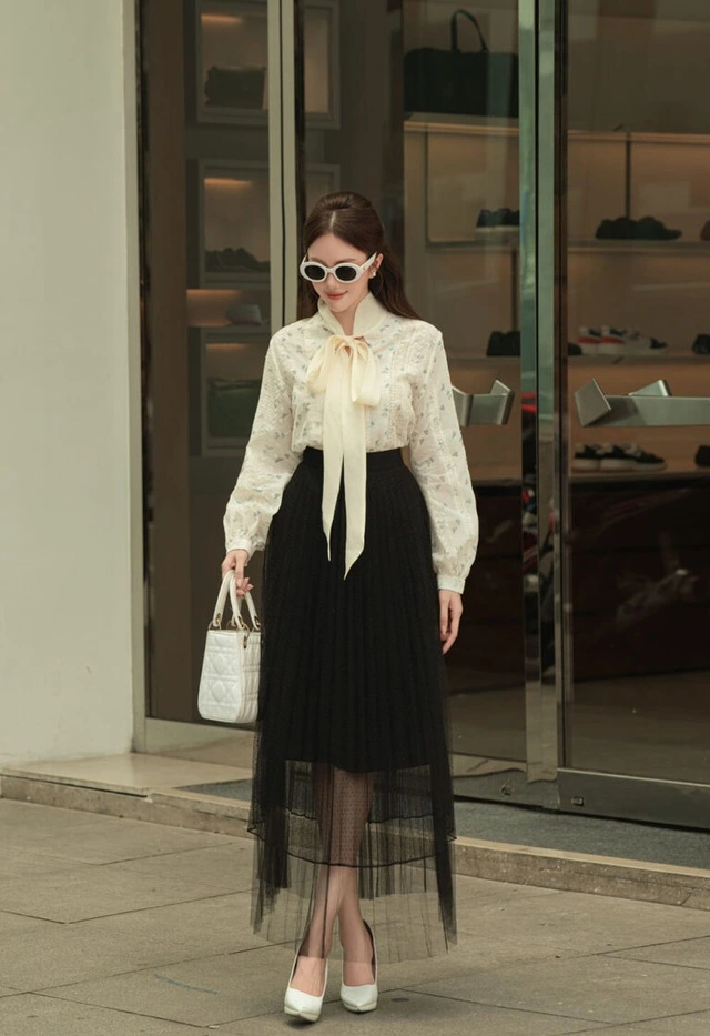 | Chân váy lưới ren xếp ly là chiếc váy lý tưởng cho những cô nàng theo đuổi hình ảnh trang nhã trong môi trường công sở, hẹn hò hoặc các sự kiện ngoài trời |
